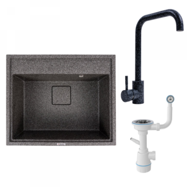 КОМПЛЕКТ: Мийка гранітна 6050 SHERLIT VALESO + Змішувач Q411B + Сифон (графіт)