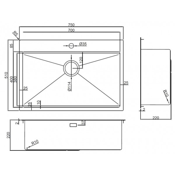 Комплектація: коландер, обробна дошка, сифон, злив-перелив, кошиковий вентиль