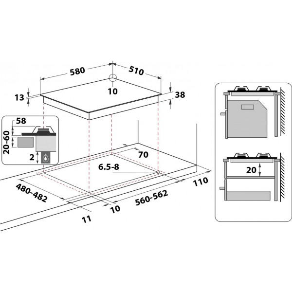 Розміри для вбудовування (ВxШxГ)