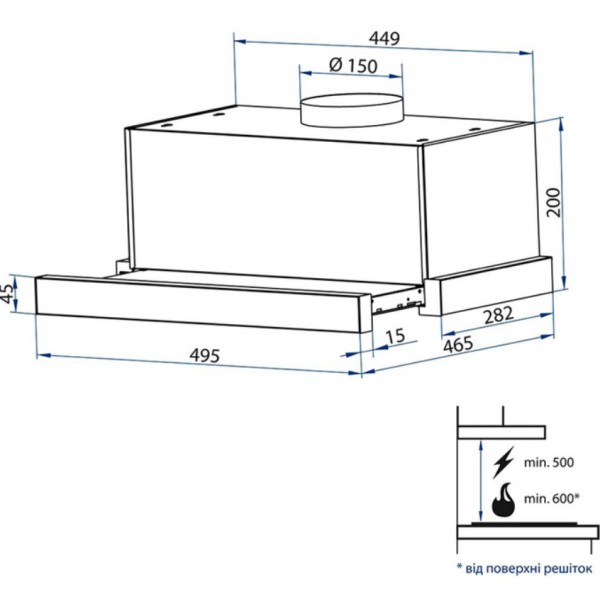 Комплектація: витяжка, гарантійний талон, інструкція,
