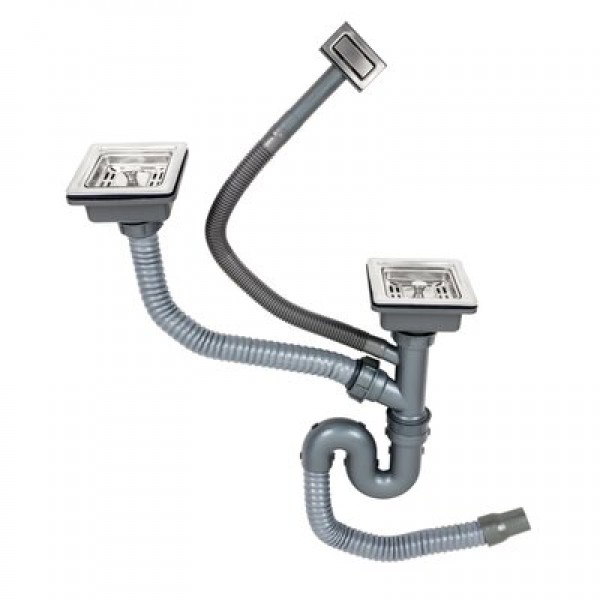 сифон подвійний Handmade, квадратний сифон, квадратний перелив, сифон для двох чаш, арматура для мийки, кухонний сифон, дизайнерська сантехніка, комплект Handmade, подвійний злив, сантехніка для кухні
