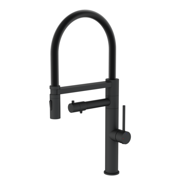 кухонний змішувач, змішувач Günter Hauer, змішувач RITTER Black, чорний змішувач для кухні, змішувач з підключенням до фільтру, високий кухонний змішувач, одноважільний змішувач, нержавіюча сталь змішувач, змішувач Польща, змішувач для мийки