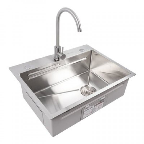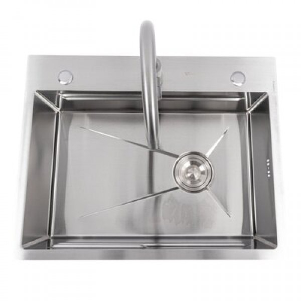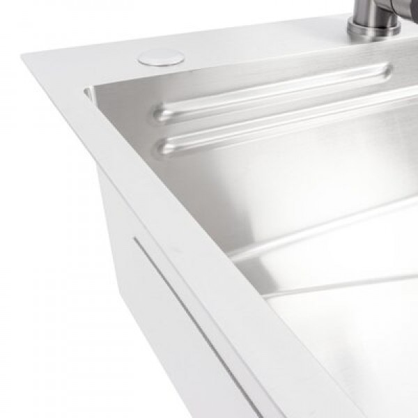 Мийка виготовлена з нержавіючої сталі SUS 201, яка добре підходить для використання на кухні. Посилений верхній борт 3 мм додає конструкції жорсткості та забезпечує надійність під час монтажу.