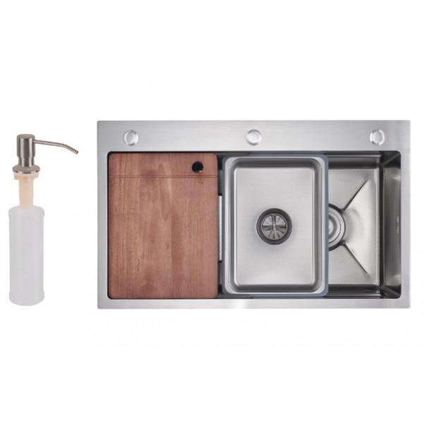 мийка Lidz H7545B, мийка Honeycomb, мийка 75х45, мийка з нержавійки, мийка з аксесуарами, мийка з дошкою, мийка з коландером, врізна мийка 80 см, мийка з дозатором, кухонна мийка Польща, стильна мийка для кухні