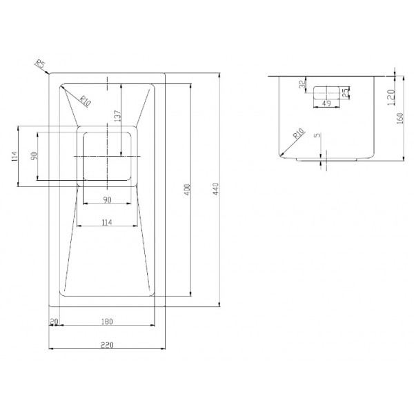 Розмір мийки: 220х440 мм