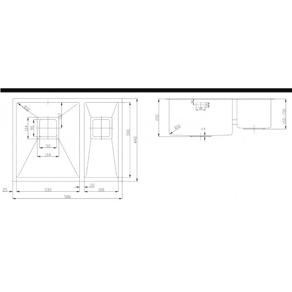 Розмір чаші: 330х400/180х400 мм