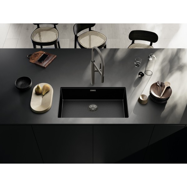 Набір декоративних елементів Blanco C-overflow та InFino® satin dark steel 206900 у чорному матовому кольорі — стильне доповнення для мийок із двома чашами. Металеві деталі забезпечують довговічність, а точна відповідність отворів гарантує простий і надійний монтаж.