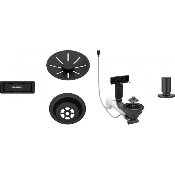 Blanco InFino чорний, відвідна арматура Blanco, арматура для двох чаш, Blanco 207426, кухонна арматура, корзинчатий вентиль, комплект для мийки, чорна арматура, німецька сантехніка