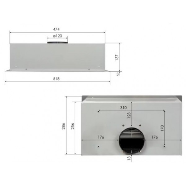 Діаметр отвору повітровода, мм: 120