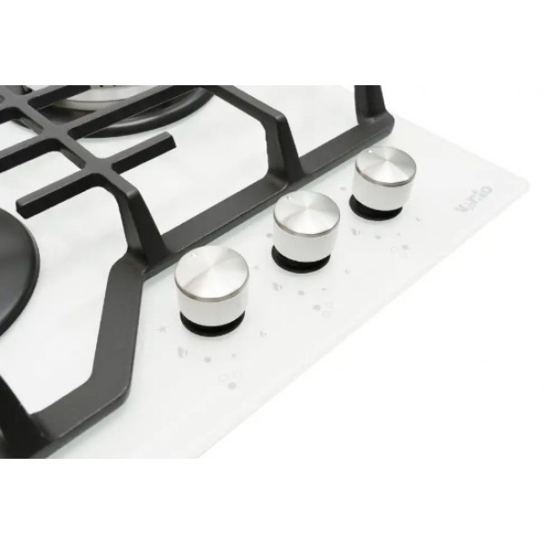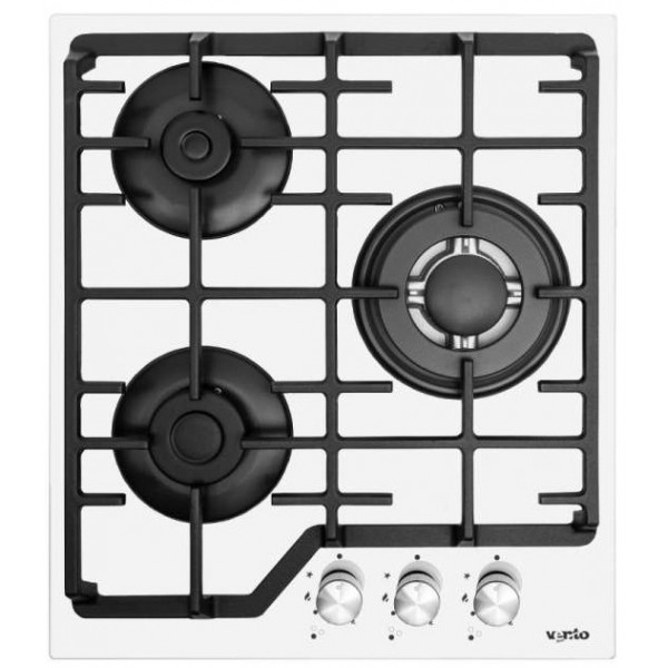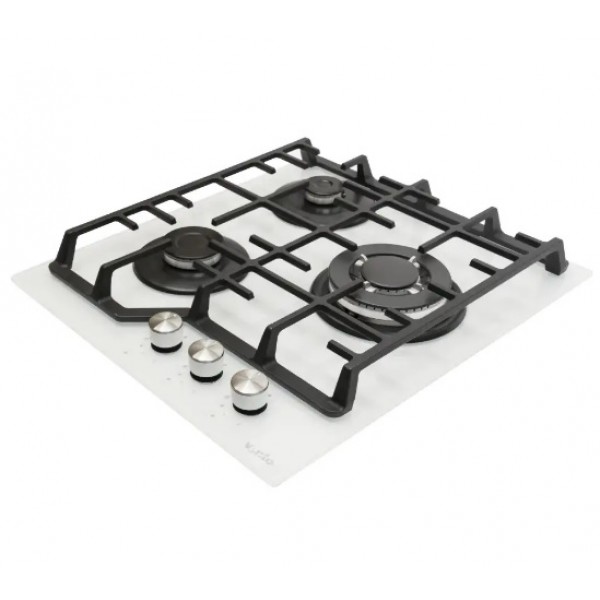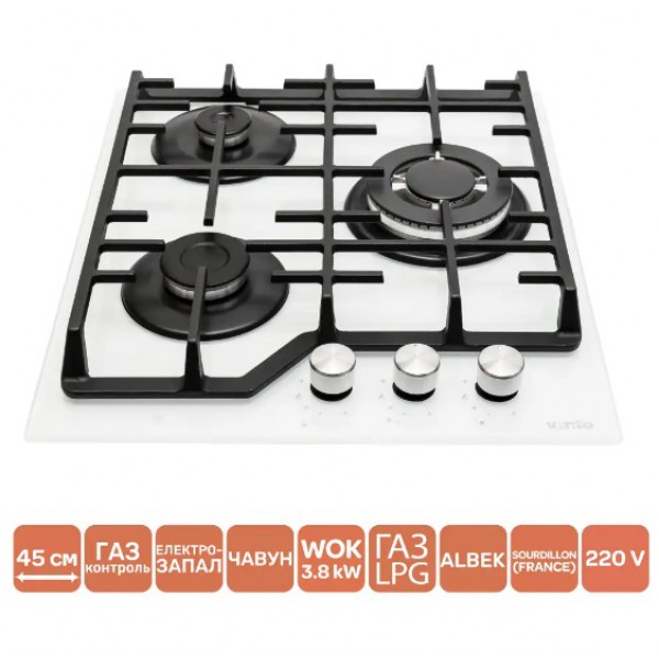 варильна поверхня Ventolux HG430-W3G CEST (WH), газова варильна поверхня 45 см, газова плита 3 конфорки, варильна поверхня SABAF, газ-контроль, електропідпал, варильна поверхня Туреччина, варильна поверхня з чавунними гратами, підключення до балонного газу