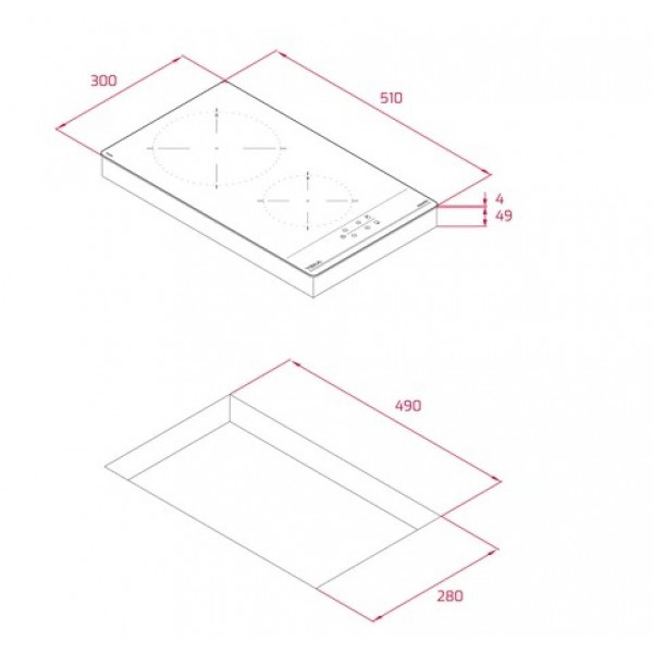 Центральна задня зона приготування - Споживання (Вт): 2100-3000