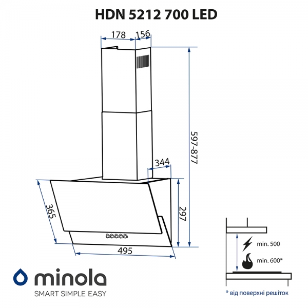 Витяжка Minola HDN 5212 BL 700 LED
